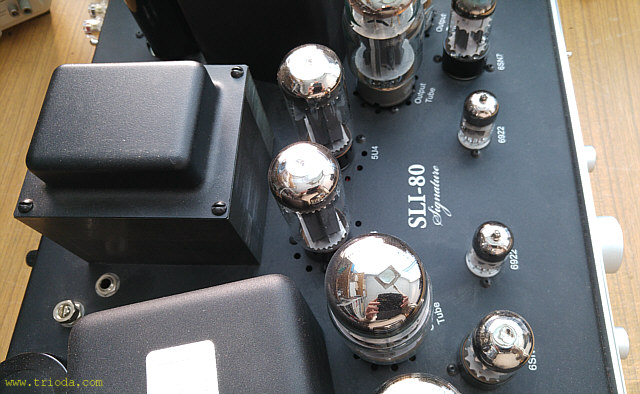 A oto obsada lamp i dumnie wyeksponowany napis z typem wzmacniacza. Teraz wiadomo dlaczego producent nie zastosował osłony lamp.