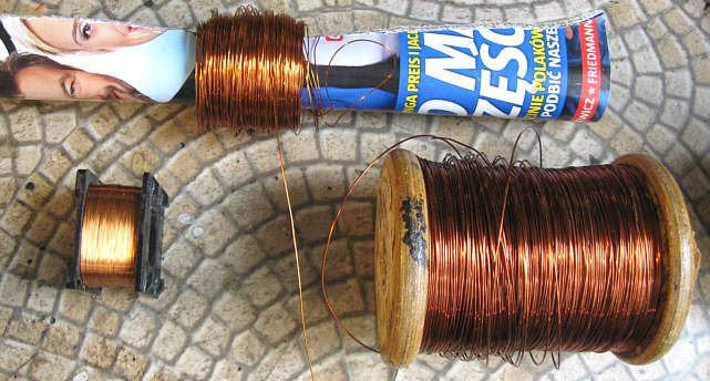 Teraz mogłem przystąpić do nawinięcia uzwojeń obu transformatorów. Szczęśliwie akurat posiadałem potrzebne druty nawojowe – częściowo NOS, częściowo z odzysku: