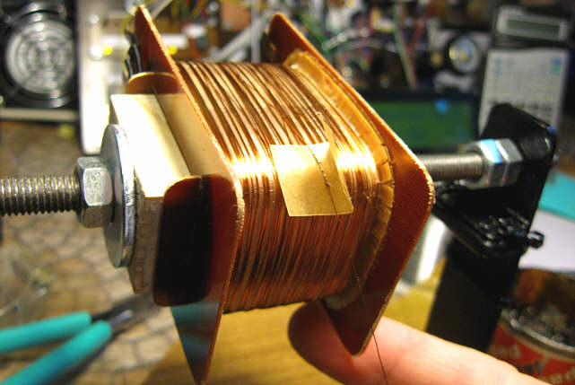 Jeśli drut podczas nawijania się zerwał, łączyłem go i izolowałem za pomocą zakładki z papieru.