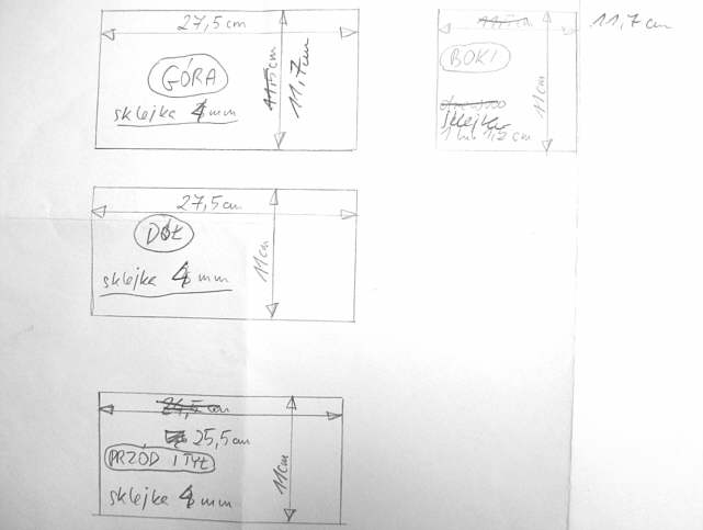 Czekała na mnie jeszcze jedna niemiła niespodzianka – ścianki wykonane ze sklejki 4 mm były prawie wszystkie powichrowane. Stolarz twierdził, że „tak cienka sklejka zawsze będzie się paczyć”. Cała ta „przyjemność” kosztowała w sumie ponad 40 zł (razem z butelką kleju).
