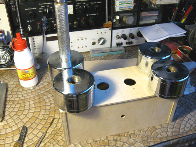 Za radą kolegów z Triody rozejrzałem się zatem za innymi podstawkami – ceramicznymi, z odzysku wojskowego ZSRR. Początkowo chciałem wykorzystać elementy aluminiowego kubka jako mocowanie tych podstawek: