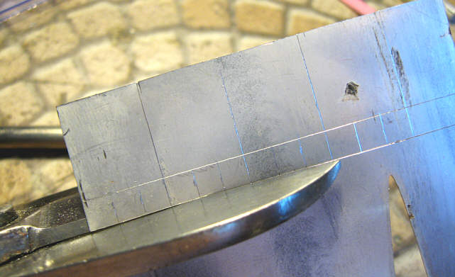 Potem przystąpiłem do wycinania elementów - wzdłuż wytrasowanych linii. Dla krawędzi zewnętrznych, tych łatwo dostępnych, użyłem nożyc do blachy. Tam gdzie nie mogłem dojść nożycami musiałem użyć piły włosowej.