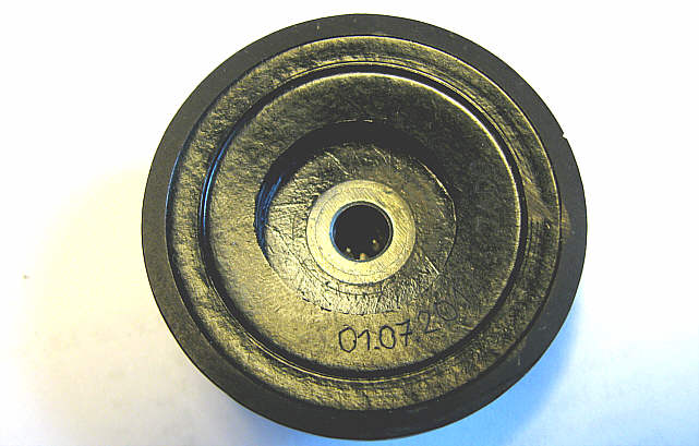 Po lekkim oszlifowaniu krawędzi pokrywki (bakelit daje się polerować po cięciu i piłowaniu, tak że uzyskujemy czarną, błyszczącą powierzchnię) i sklejeniu razem, (do tego jeszcze doszła zaślepka z przodu gałki) otrzymałem gałkę: