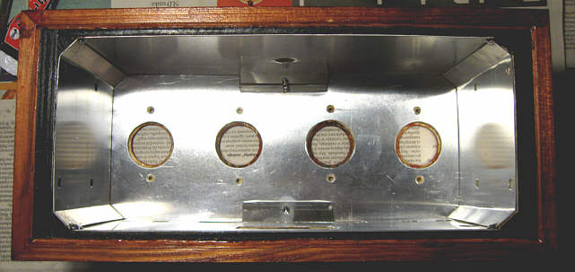 Teraz pozostała jeszcze jedna rzecz do zrobienia przed przystąpieniem do montażu elementów. Wyłożenie środka obudowy blachą, która będzie ekranować całość od wpływu „obcych pól elektromagnetycznych”. Miałem użyć blachy żelaznej (stalowej) cynkowanej, ale w sklepie powiedzieli, że „w Warszawie Pan takowej nie dostaniesz”. Co było robić – wybrałem więc aluminiową, 0,8 mm. Trzeba było ją odpowiednio do wewnętrznych ścianek obudowy przyciąć i wygiąć: