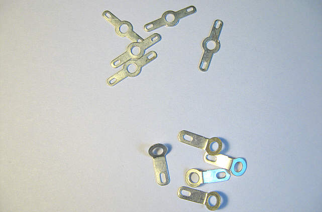 Po przełożeniu blaszek przez otwory, rozgiąłem je, wyrównałem i zaokrągliłem drugi koniec - ostatecznie ukształtowałem końcówki.