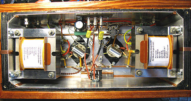 Z tego względu przyjąłem prąd anodowy lamp EBL21 na poziomie 36 mA i oporność anodową 7000 omów, godząc się na zmniejszenie mocy wyjściowej (co sprzyjało również założonej energooszczędności). Mniejszy prąd anodowy przekłada się równocześnie na mniejszy przekrój drutu w transformatorze głośnikowym. Cieńszy drut, to z kolei więcej przestrzeni do wykorzystania na karkasie, można się zatem pokusić o zwiększenie liczby zwojów uzwojenia pierwotnego, powodujące wzrost indukcyjności transformatora i lepsze przenoszenie dolnych częstotliwości.