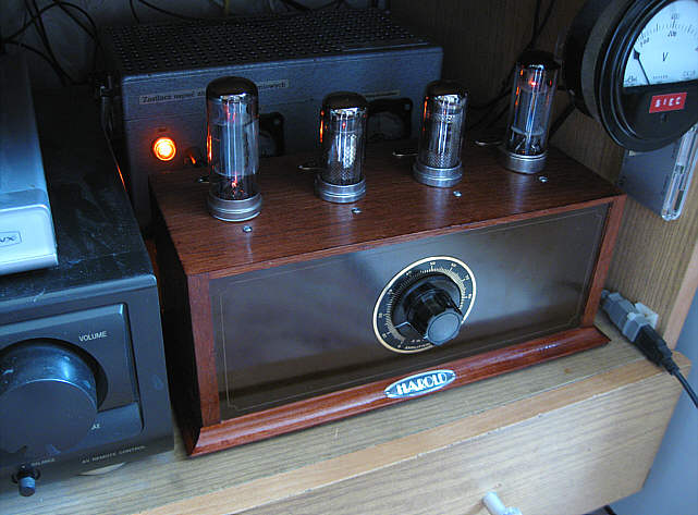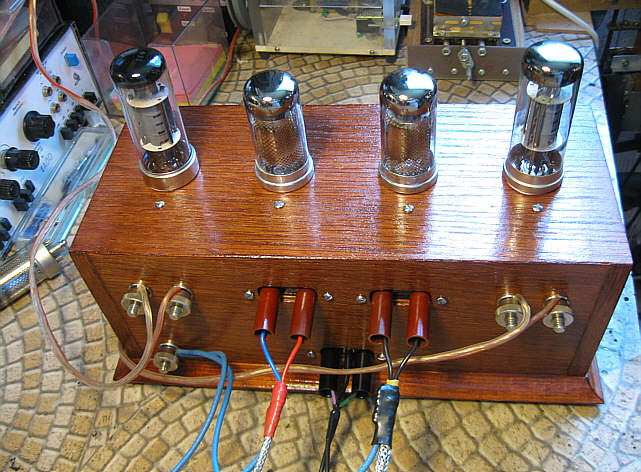 Zastosowanie wyłożenia blachą wewnątrz drewnianej obudowy sprawdziło się – wzmacniacz nie jest czuły na pola zakłócające. Zatrzymanie odtwarzacza DVD w stanie „pause” i „rozkręcenie na max” potencjometru siły dźwięku sprawia wrażenie, że kręci się wyłączonym wzmacniaczem – nie słychać w zasadzie żadnego wzrostu zakłóceń. Dopiero po zbliżeniu ucha do głośnika coś tam ledwo słychać. Poziom przydźwięku sieciowego mierzony na oporności 4 Ohm mieści się w granicach 55 mV pp – niezależnie od położenia potencjometru wzmocnienia ani potencjometru symetryzacji żarzenia. Natomiast zastąpienie żarzenia prądem przemiennym (6,3 v) przez żarzenie prądem stałym, powoduje całkowity jego zanik. Ponieważ jednak przydźwięk ten słychać tylko głuchą nocą (a w zasadzie lepiej go wyczuć kładąc palce na membranę głośnika niskotonowego) i to bardziej jako „ucisk w uszach” niż ton, to na razie nie ma potrzeby modyfikacji zasilacza.
