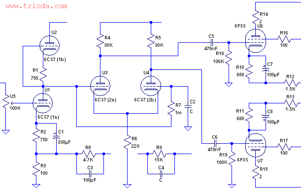 Dla zainteresowanych przedstawiam zrysowany z natury schemat ideowy części wzmacniającej.