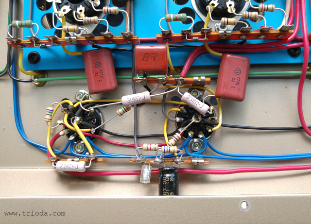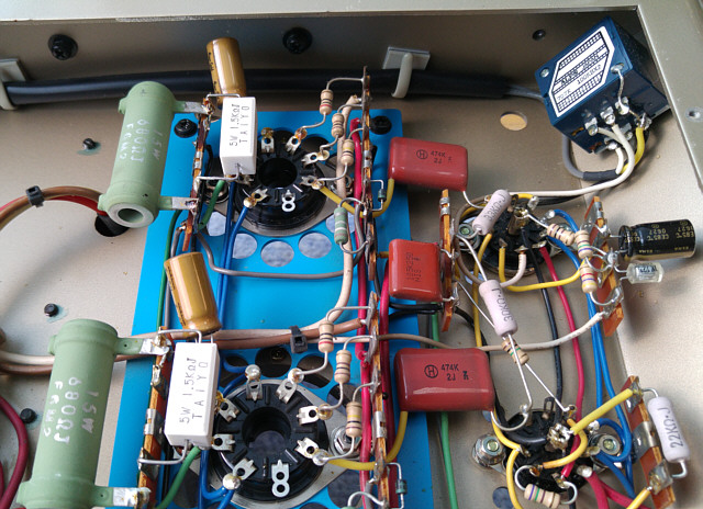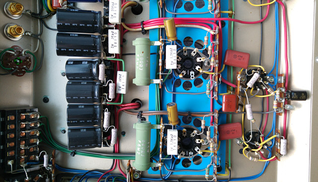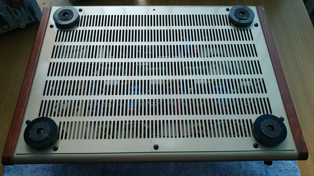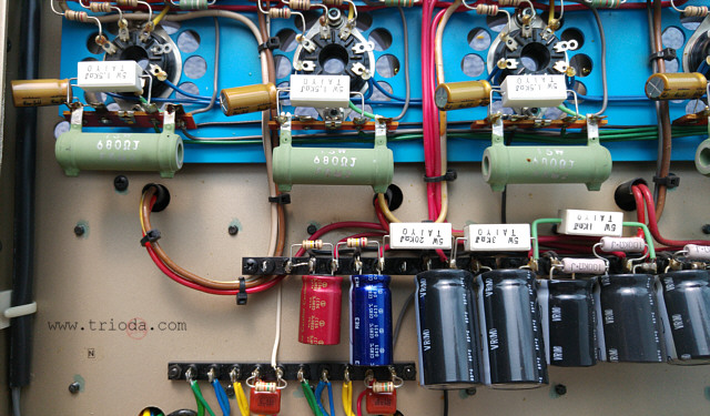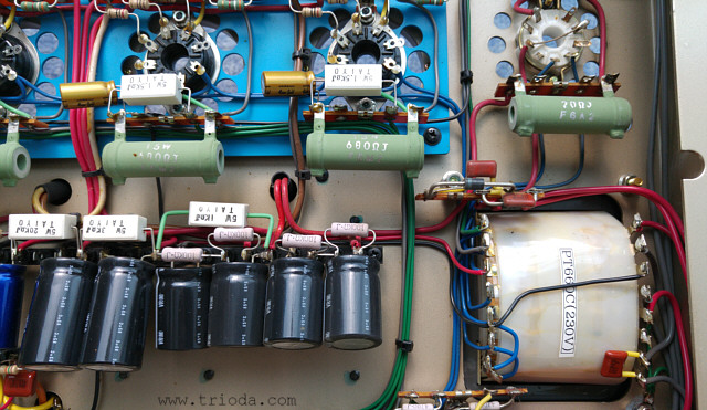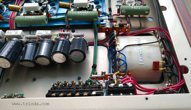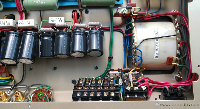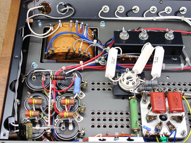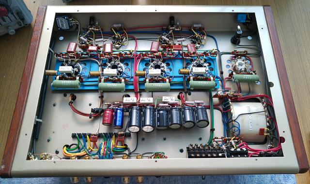 Wróćmy do naszego tytułowego wzmacniacza. Jak wspomniałem jego wygląd jest różnie odbierany i wzbudza skrajnie różne emocje. Zupełnie inaczej przedstawia się sprawa montażu i widoku tego co lubię najbardziej, czyli wnętrza. Wzmacniacz jest wspaniale zmontowany. To moja opinia. Na niektórych audiofilskich forach dyskusyjnych sposób lutowania jest krytykowany. Nie podobają się głównie punkty lutownicze i powierzchnia cyny, która uznawana jest za zbyt chropowatą i pozbawioną blasku. Ja się z tym nie zgadzam.