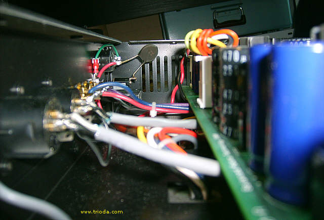 W beczce miodu może się pojawić łyżka dziegciu. I tak jest w przypadku tego wzmacniacza. Może to tylko przypadłość tego egzemplarza, może to pozostałość jakiejś naprawy, która została wykonana bez wiedzy producenta. Faktem jest, że wzorcowa estetyka wykonania została zakłócona tym drobiazgiem. Jeśli ktoś ma problemy z jego lokalizacją zapraszam do obejrzenia następnej fotografii...