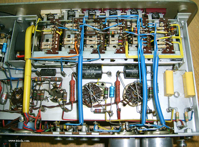 Dla bardziej dociekliwych zamieszczam rysunki łączące położenie elementów ze schematem ideowym. Pochodzą one z instrukcji obsługi przedwzmacniacza. Tak jak w przypadku schematu można je otworzyć w formie powiększonej i tym samym bardziej czytelnej.