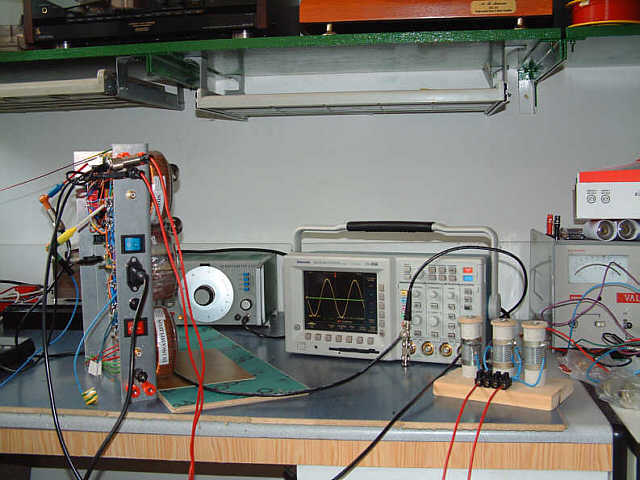 Przystąpiłem do uruchamiania wzmacniacza. Zrobiłem to etapami, w taki sposób aby zminimalizować ryzyko jego uszkodzenia w przypadku błędów montażowych. Aby opis kolejnych kroków uruchamiania nie był nudny umieszczam go razem z kilkoma zdjęciami wzmacniacza na stanowisku pomiarowym.