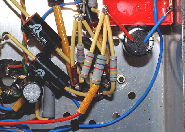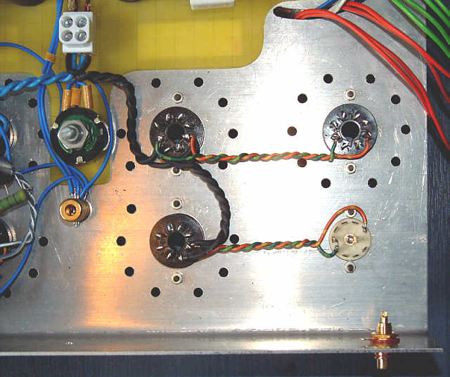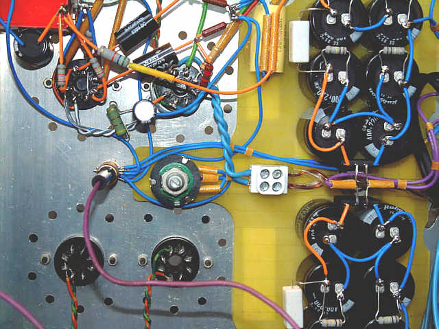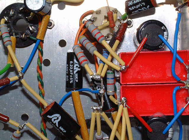 A oto szczegóły obejmujące prowadzenie przewodów żarzenia oraz potencjometr służący do minimalizacji przydźwięku.
