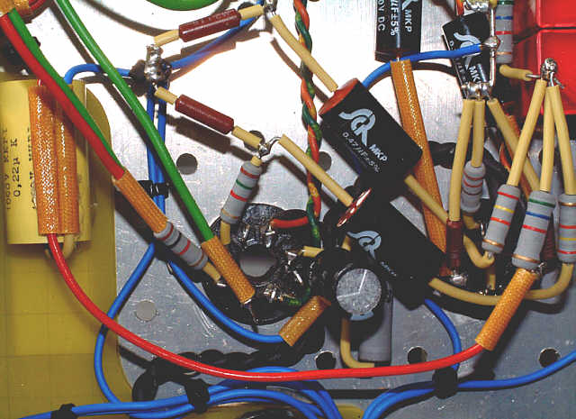 Tutaj widać jak w ostatecznej wersji połączony został zasilacz anodowy.