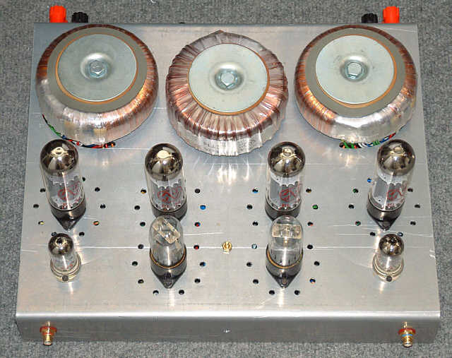 Ponieważ przez ostatnie dwa lata miałem okazję patrzeć na kurzącą się konstrukcję wzmacniacza opisanego wyżej wzmacniacza uznałem, że jej konstruktor już chyba nigdy jej nie skończy i za jego zgodą postanowiłem kontynuować budowę wzmacniacza jako trzecia!!! z kolei osoba (na tym wzmacniaczu wisi jakieś fatum). Postaram się opisać moje boje z tym urządzeniem na tej stronie i w razie problemów sygnalizować je na forum dyskusyjnym (http://www.trioda.com/php/forum/index.php), na którym wypowiadam się jako gsmok.