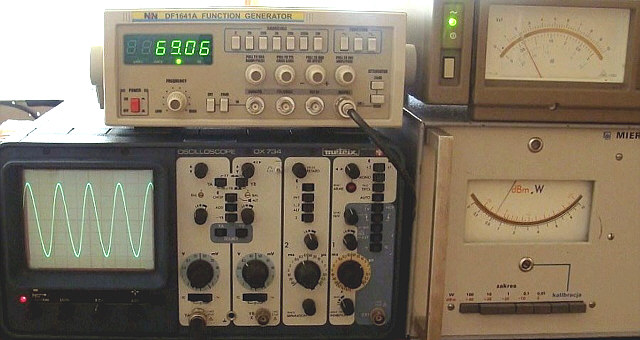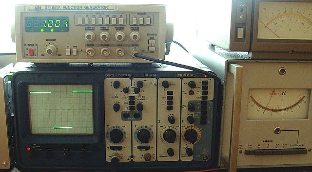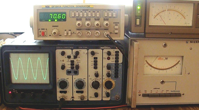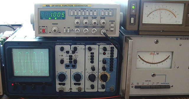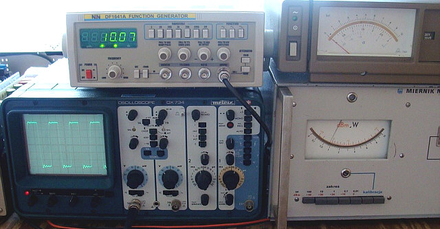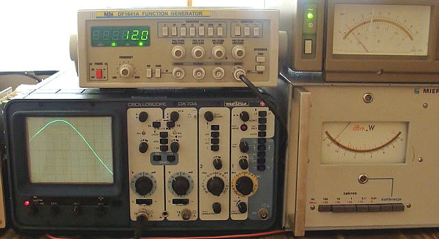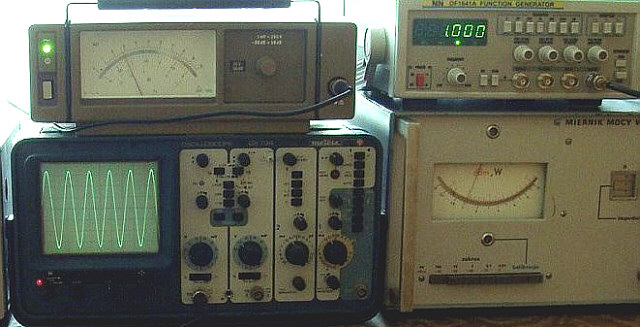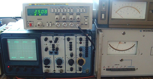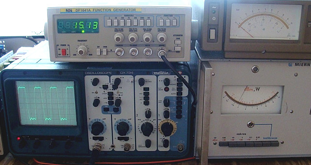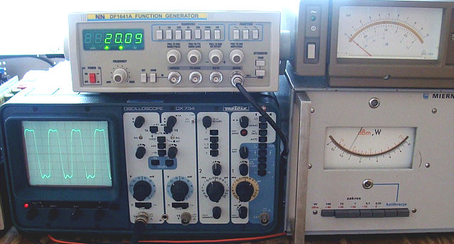 Sygnał prostokątny o częstotliwości 1kHz, moc wyjściowa 10W.