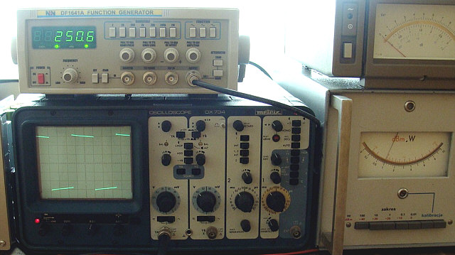 Sygnał prostokątny 250Hz przy mocy wyjściowej równej 10W.