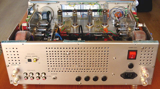 Przedstawiam opis wzmacniacza stereofonicznego na lampach QQE03/12 w stopniu mocy. Lampy przeznaczone były do pracy w urządzeniach nadawczych, przeważnie w stopniach wyjściowych radiotelefonów FM na wysokich częstotliwościach 200 MHz. Nie były łatwym elementem konstrukcyjnym - stwarzały różne niespodzianki w postaci wzbudzania się układów i oscylacji. Wzmacniacz pracuje w trybie pentody w układzie Push-Pul 2 X QQE03/12 w klasie AB na każdy kanał. Na początku planowałem zastosowane transformatorów wyjściowych w układzie "Quad", lecz nastąpiły pewne trudności w realizacji.