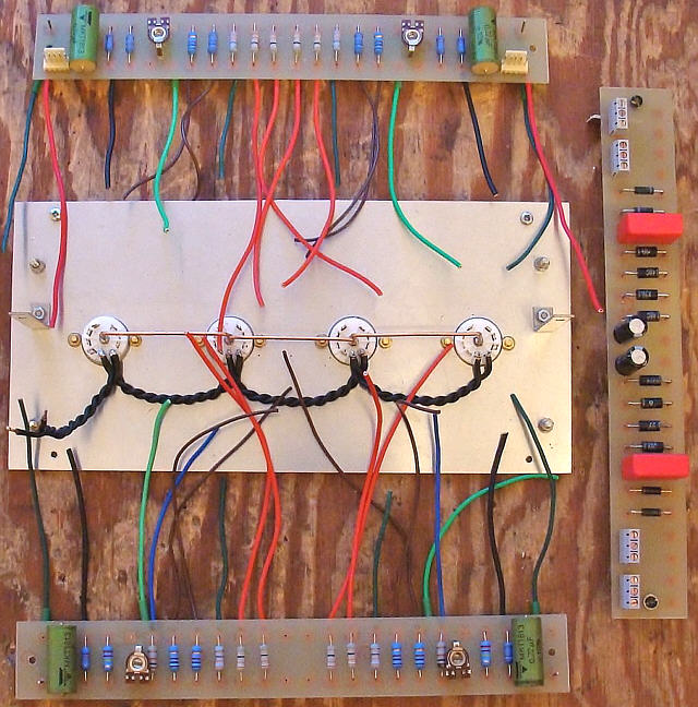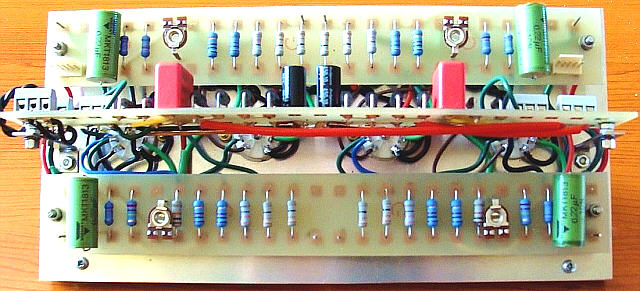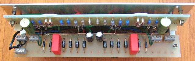 Moduły stopni wejściowych (poszczególne kanały na oddzielnych płytkach) i filtru zasilacza.