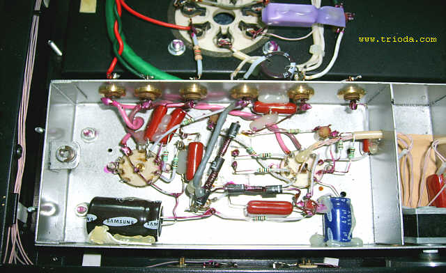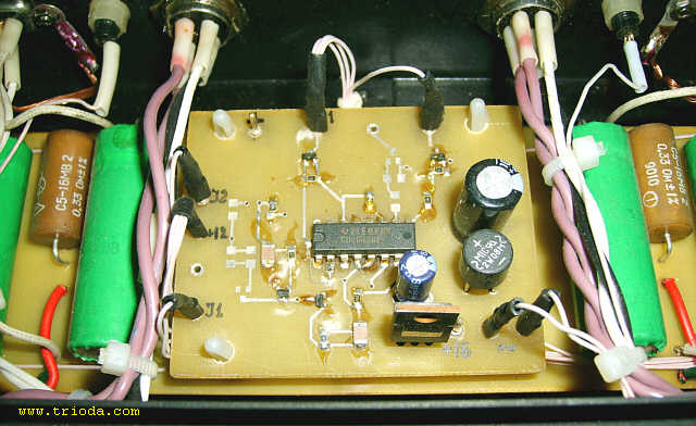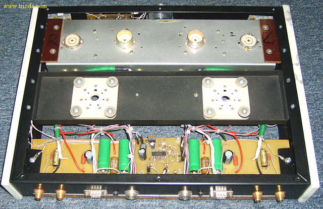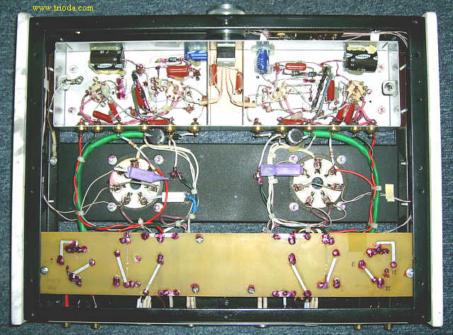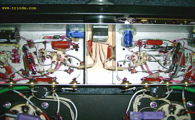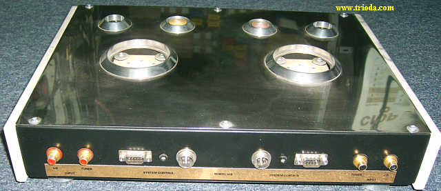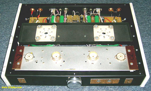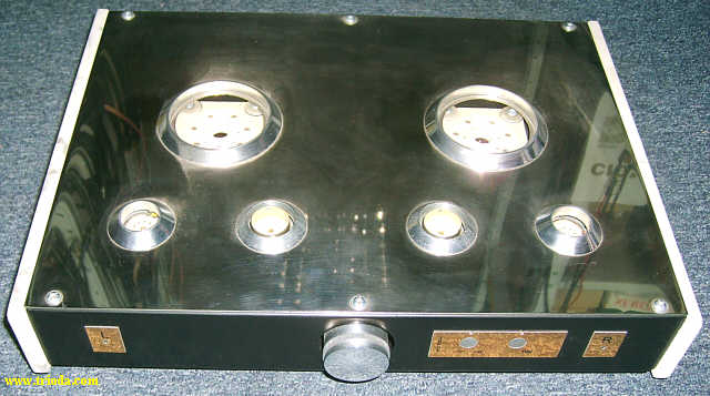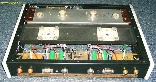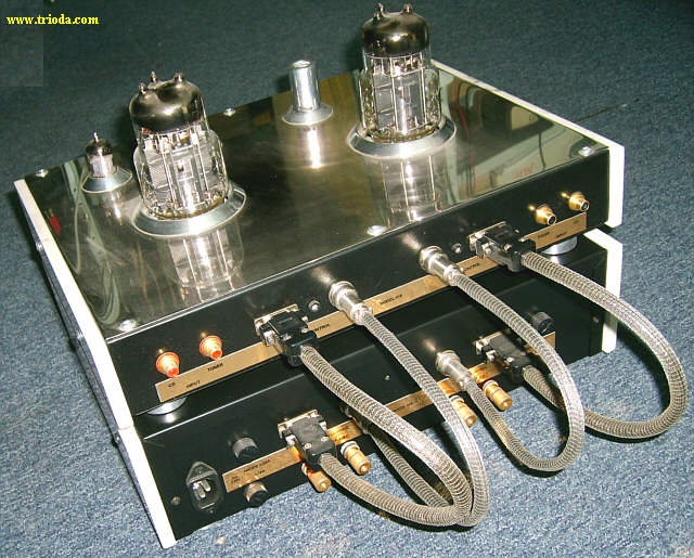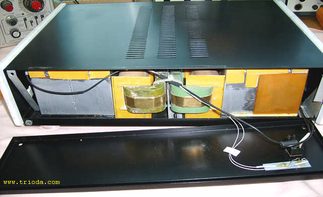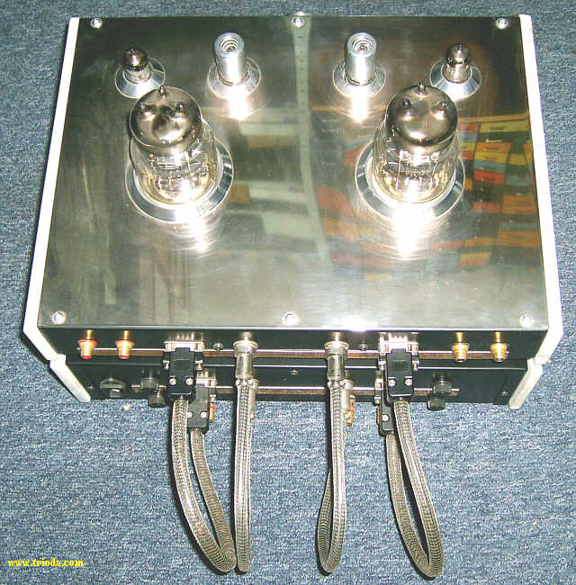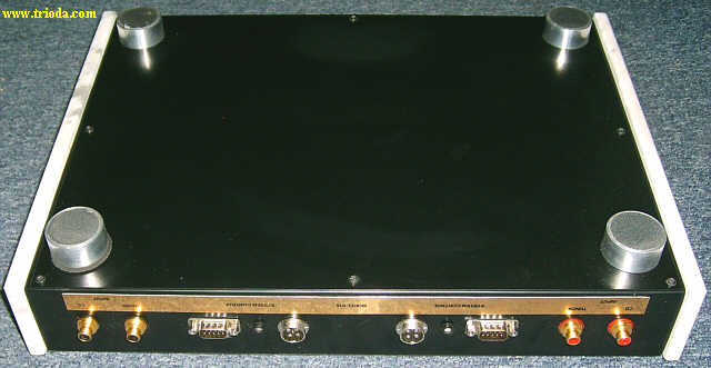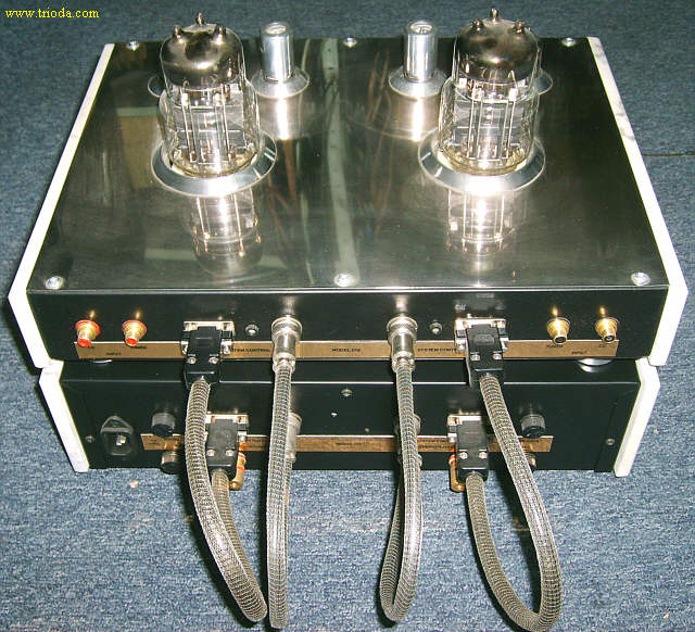 Wzmacniacz umieszczony jest w dwóch obudowach. Górna mieści układ właściwy wzmacniacza, zaś dolna zasilacz. Oba bloki wzmacniacza połączone są ze sobą za pomocą czterech solidnych kabelków. Rozpocznijmy od kilku ujęć "kompletnego", czyli połączonego w całość urządzenia.