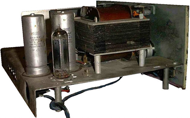 Jednolampowy zasilacz wzmacniacza jest klasycznym prostownikiem pełnookresowym z filtracją napięcia typu kondensatorowo-rezystancyjnego.