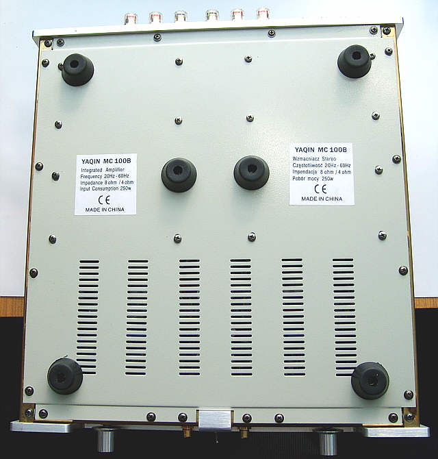 Yaqin MC-100B to stereofoniczny wzmacniacz lampowy produkcji chińskiej. Jego oryginalna nazwa, stanowiąca zarejestrowany znak firmowy, zawiera kilka dziwnych symboli i nie daje się zapisać tradycyjnym alfabetem. Chcąc nie chcąc, w niniejszej relacji zmuszony jestem stosować nazwę Yaqin. Jest to usprawiedliwione podejście, gdyż nawet w instrukcji obsługi "robaczkowe" określenie wprawdzie pojawia się na okładce, za to już wewnątrz instrukcji znajdziemy symbol Yaqin MC-100B. Wzmacniacz nie grzeszy wyrafinowaną estetyką. Charakterystyczna klatka stanowiąca osłonę lamp kojarzy mi się z pojemnikiem do przechowywania chleba