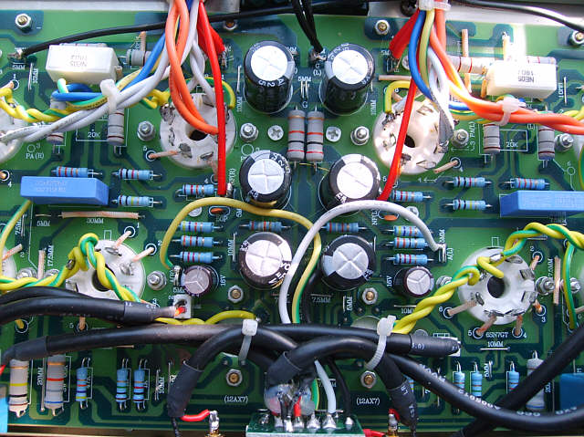 - 12AX7B x 2 (stopnie wzmocnienia napięciowego).