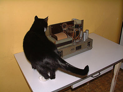 Kotka DeeDee była szczególnie zainteresowana puszką z lampami przedwzmacniacza.