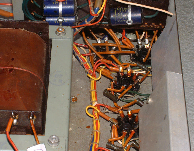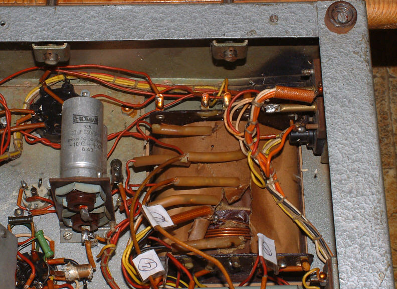 Nadszedł czas na pokazanie szczegółów. Na kilkunastu fotografiach starałem się uchwycić jak najwięcej detali, które (mam nadzieję) mogą być przydatne dla każdego, kto stanie przed zadaniem odrestaurowania takiego wzmacniacza).