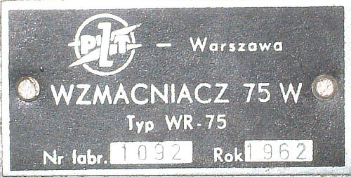 Wzmacniacz, który chciałbym zaprezentować wyprodukowany został w Warszawie w 1962 roku (dowód rzeczowy w postaci tabliczki znamionowej przedstawiam na poniższej fotografii).