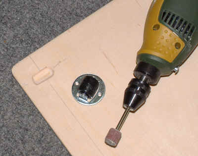Od czego jednak są narzędzia. Stosując widoczną miniwiertarkę wyposażoną w mały wałek z papierem ściernym "wyfrezowałem" walcowane otwory pod kółeczka.