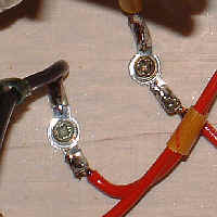 A oto fotografia pokazująca w powiększeniu jak zostały przylutowane przewody uzwojeń wtórnych transformatora sieciowego.