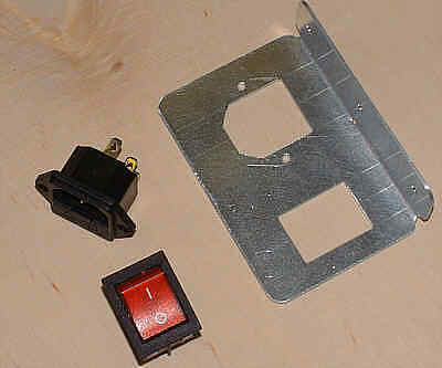 A tak wygląda gotowy wspornik z zamontowanym gniazdem sieciowym z bezpiecznikiem oraz wyłącznikiem sieciowym.