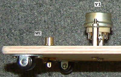 Obok widać gniazdko wejściowe [WE] oraz podstawkę lampy [V1]