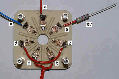Po sprawdzeniu poprawności zamontowania podstawki [V2] odkręciłem ją i do wyprowadzeń przylutowałem wszystkie elementy dochodzące do lampy 6S33S. Są nimi: