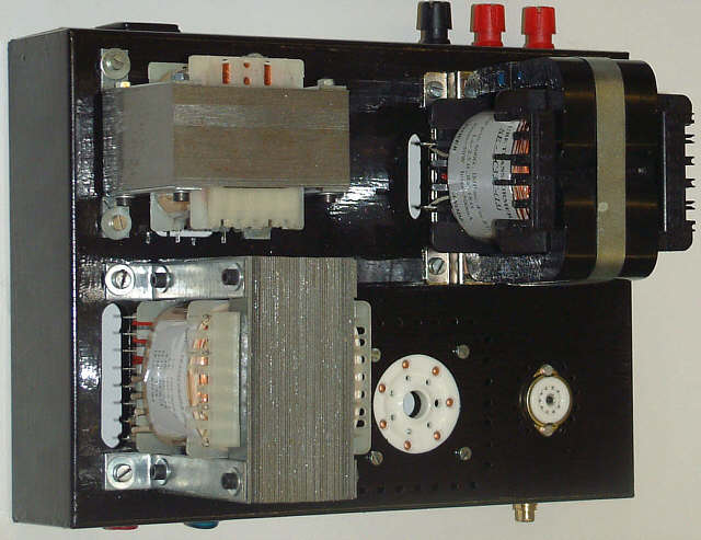Nie zastosowałem dodatkowego bocznikowania w zasilaczu ujemnego napięcia siatki lampy końcowej gdyż takową rolę wystarczająco skutecznie pełnią: potencjometr montażowy PR1 i rezystor R3 pokazane wcześniej na schemacie tej sekcji zasilania.