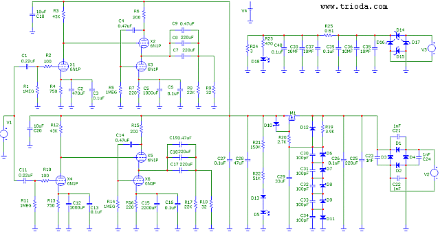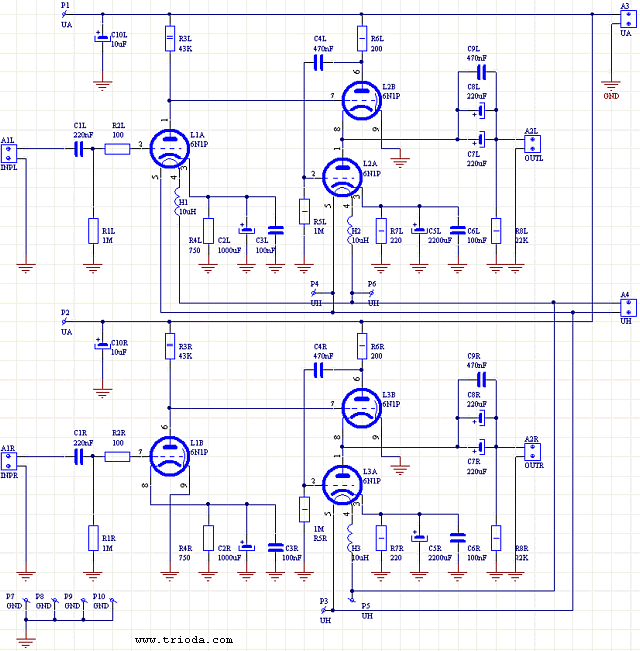 Niniejszy opis dotyczy wzmacniacza słuchawkowego opartego na bardzo popularnym schemacie wykorzystującym wtórnik White'a. Opis nie jest zamkniętym opracowaniem, a jedynie miejscem umieszczania istotnych informacji towarzyszących wątkowi na Forum TRIODA. Dlatego też, przynajmniej w początkowym okresie może sprawiać wrażenia nieco chaotycznego - za co z góry przepraszam. Docelowo zamierzam umieścić tutaj szczegółowe wyniki obliczeń symulacyjnych, wyniki pomiarów z zastosowaniem różnych typów słuchawek oraz opis praktycznego wykonania wzmacniacza na podstawie zaprojektowanych do niego płytek drukowanych.