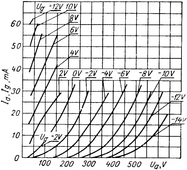 A oto rodzina charakterystyk anodowych modelu lampy 6N1P ...