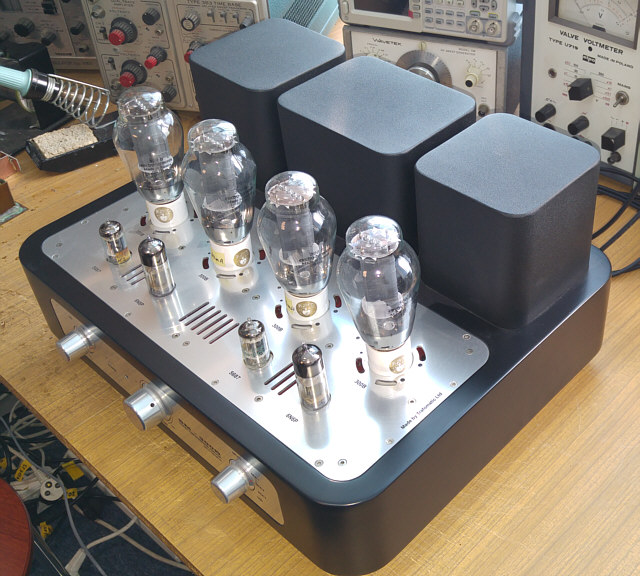 Solidny i dobrze wykonany wzmacniacz lampowy. Stopień końcowy na triodach 300B w konfiguracji przeciwsobnej. O ile sam tor sygnałowy jest dosyć tradycyjny, to układy wspomagające jego pracę np. układy regulacji prądów spoczynkowych lamp końcowych niełatwo spotkać w innych wzmacniaczach lampowych. Zapraszam do obejrzenia szczegółowych fotografii jego wnętrza.
