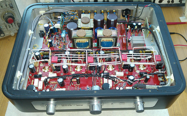 Wzmacniacz naprawdę fajny. Jedyny mankament to 1 punkt w skali 10-punktowej za serwisowalność. Pomiary napięć są łatwe, natomiast wymiana jakiegokolwiek elementu to prawdziwe wyzwanie. Postaram się dodać parę szczegółów w tym temacie, ale dopiero za jakiś czas. A teraz zestaw obiecanych fotografii. Patrzcie i podziwiajcie.