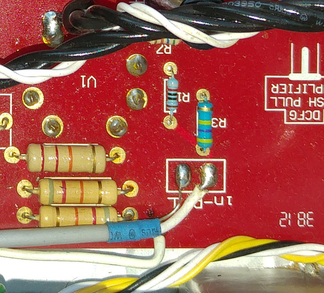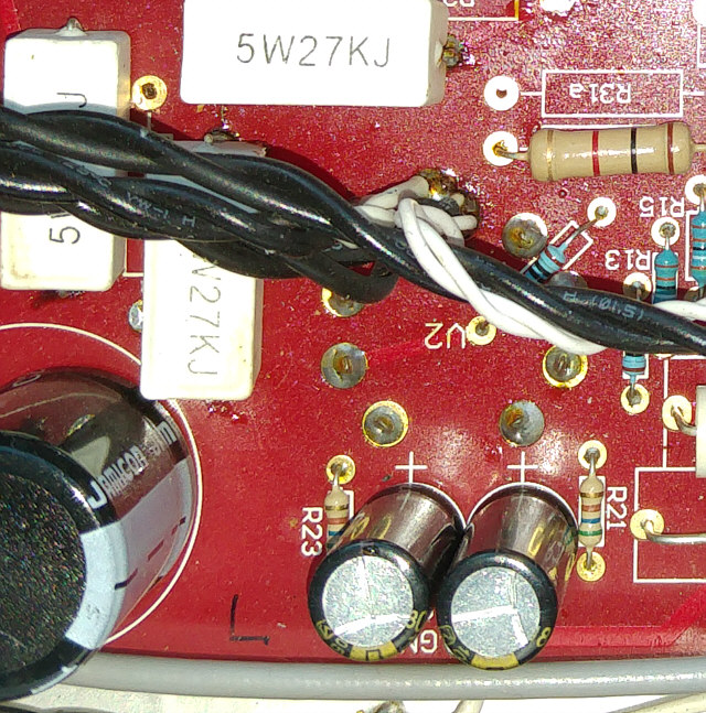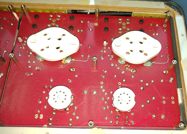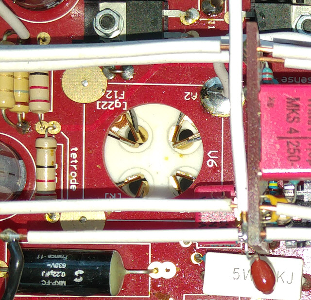 Okolice na płytce drukowanej w pobliżu drugiej lampy (V2).