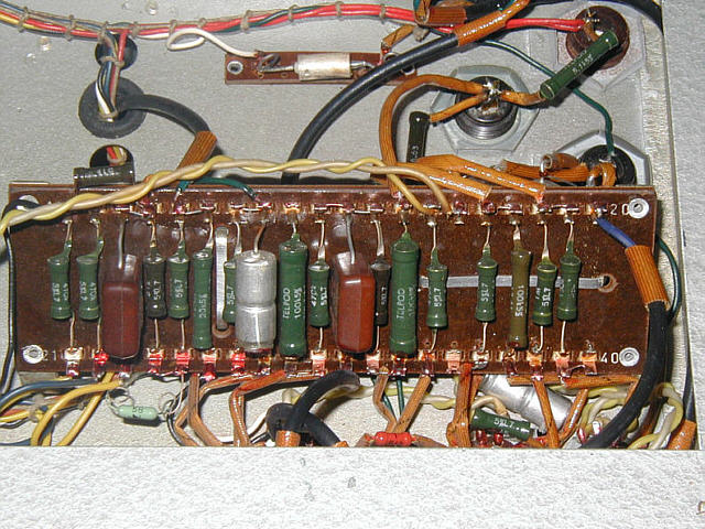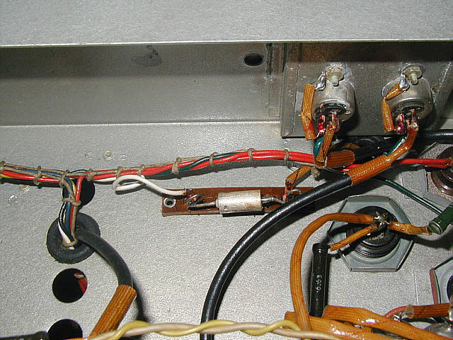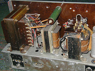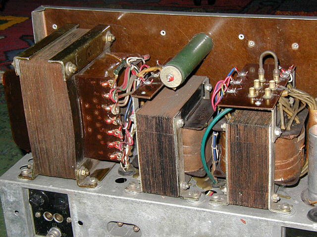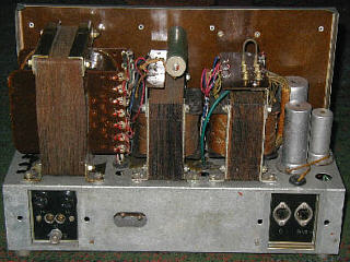 Wewnątrz chassis znajdują się dwie pionowe bakelitowe płytki z przynitowanymi łączówkami, na jednej umieszczone są rezystory i kondensatory połączone przewodami z wyprowadzeniami podstawek lampowych, na drugiej diody prostownicze. Przewody prowadzone są w postaci zszytych szpagatem wiązek.