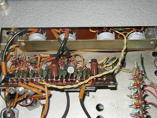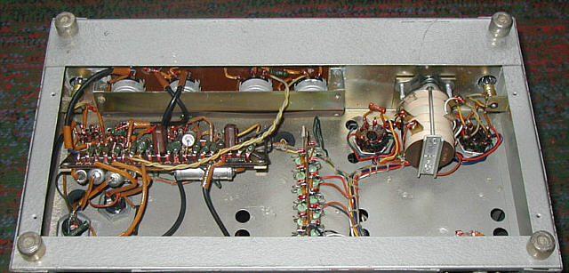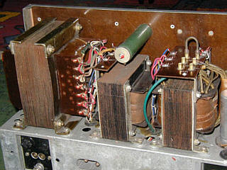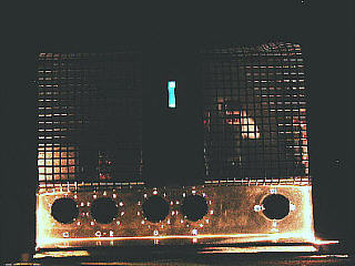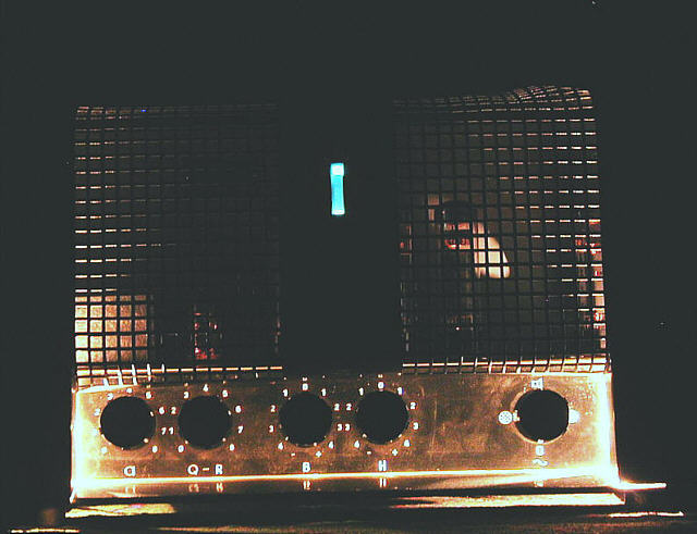 Od góry chassis jest przedzielone stalową blachą, separującą widoczne przez siatkową część obudowy i wydzielające dużo ciepła lampy wzmacniacza od transformatorów i kondensatorów elektrolitycznych.