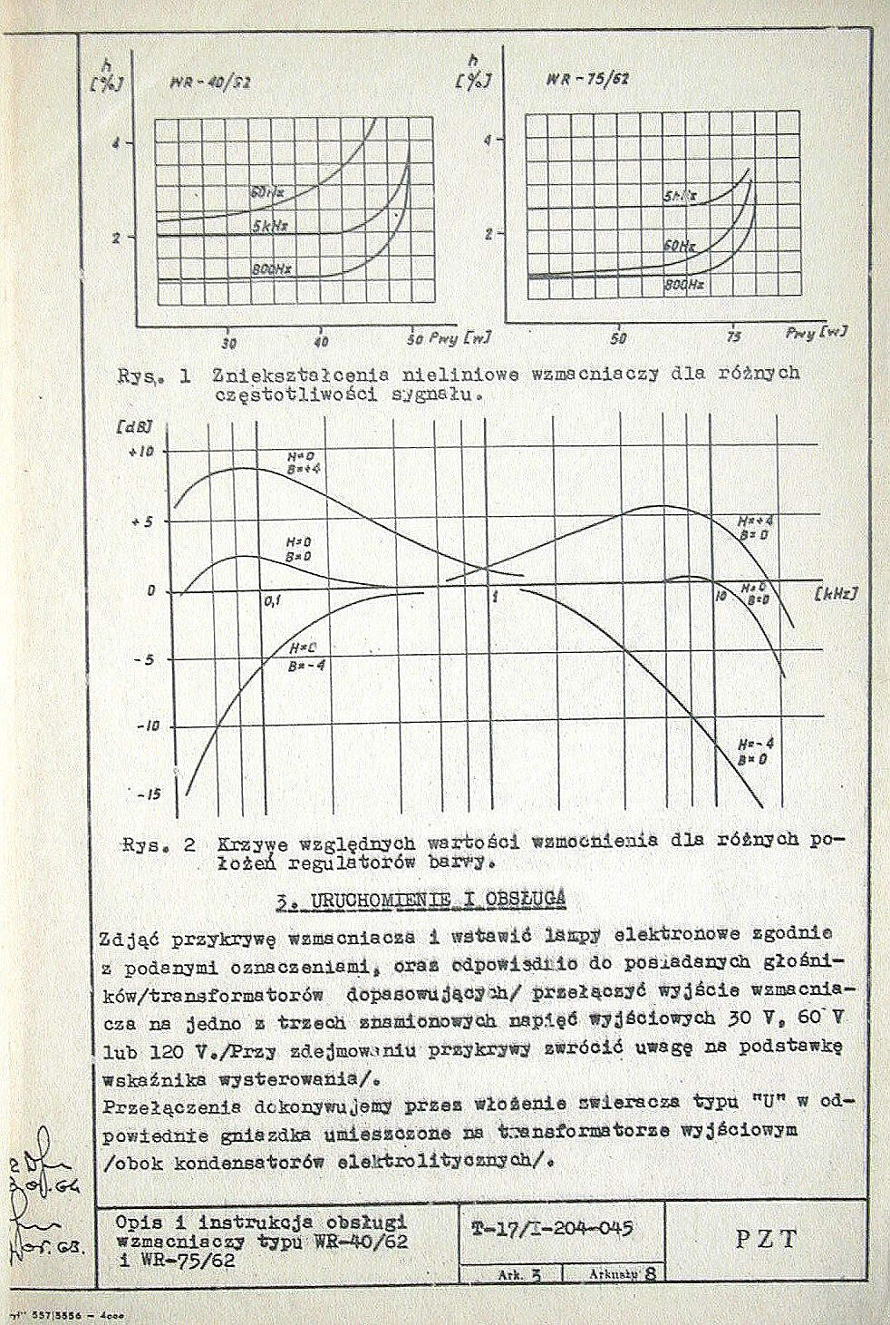 W zastosowaniach instrumentalnych (gitary elektryczne: solowa i basowa oraz organy) WR40 (75)/62 spisywał się nad podziw dobrze!