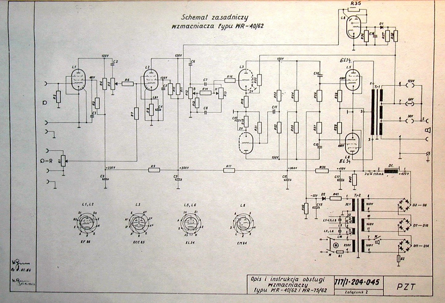 - zużyte lampy EL34 powinny być wymieniane na sparowane (dla WR40/62) lub zczwórkowane (dla WR75/62).