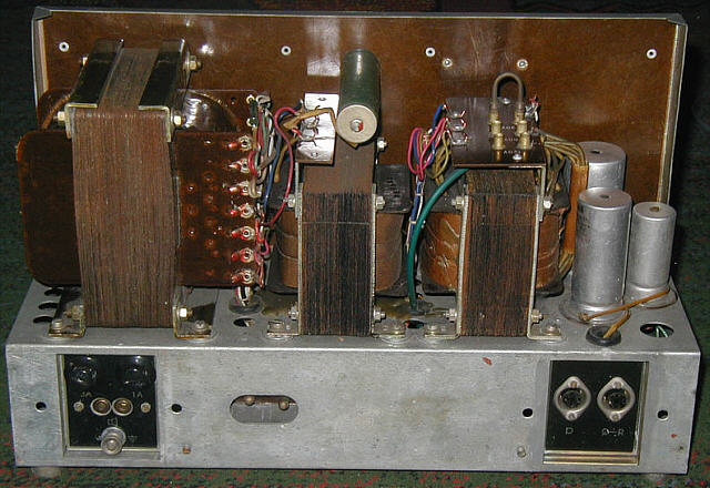 Z tyłu chassis znajduje się „żelazkowe” gniazdo zasilania sieciowego, w lewej „wnęce” gniazda bezpieczników - sieciowego i anodowego, bananowe gniazda „głośnikowe” oraz nakrętka do mocowania przewodu uziemiającego. W prawej „wnęce” są dwa gniazda „diodowe” (DIN) sygnałowe: wejście „Radio /Gramofon” oraz wejście mikrofonowe.