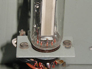 Do płyty rozdzielającej chassis przykręcony jest wspornik z podstawką wskaźnika wysterowania EM84.