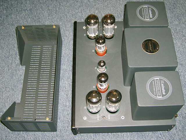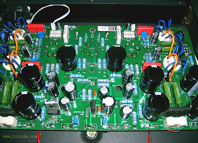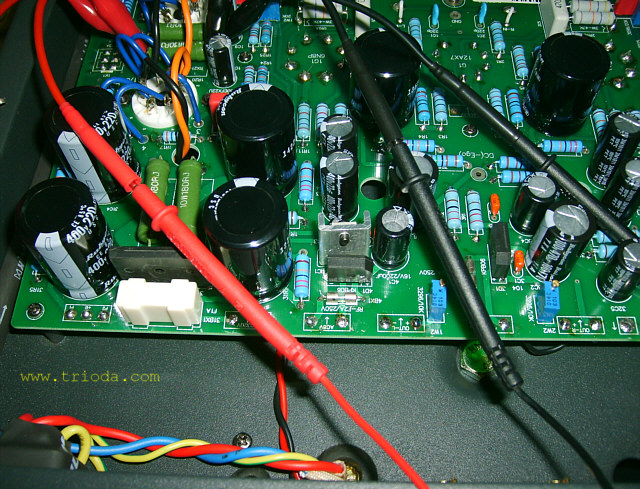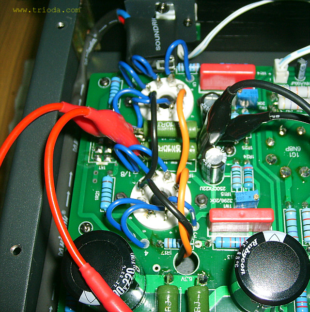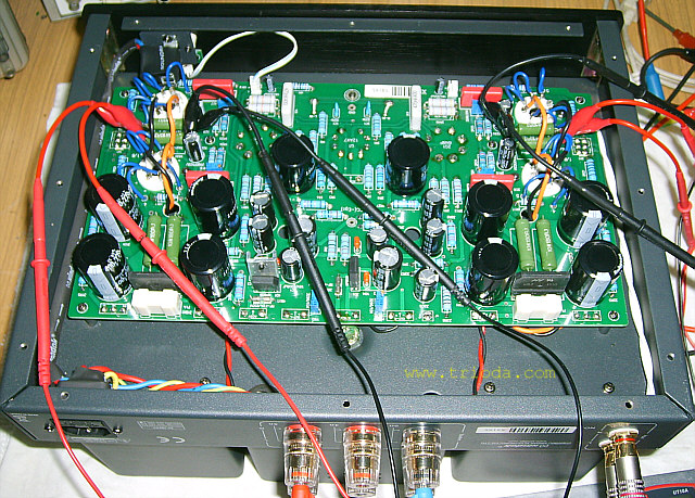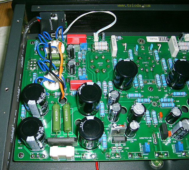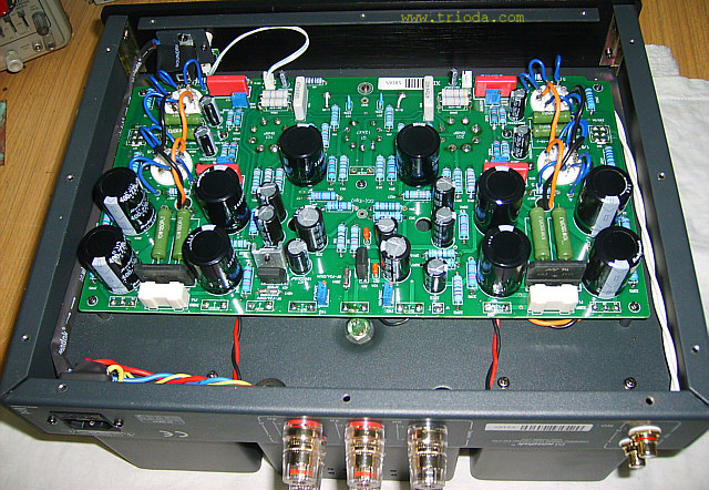 Zrywając z konwencją kolejności zamieszczania fotografii urządzeń w dziale Galeria serwisu WWW.TRIODA.COM, w ramach której pierwsze zdjęcie przedstawia widok ogólny wzmacniacza, a zdjęcia "rozbierane" pojawiają się później, tym razem jako pierwsze zdjęcie pokazuję fotografię, na której wzmacniacz wygrzewa się w trakcie procedury regulacji prądów spoczynkowych po wymianie lamp końcowych.