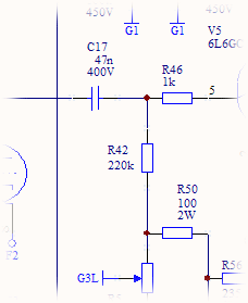 Zasadnicze znaczenie dla zapewnienia stabilności układu ma zmiana nr 1. Zmniejszenie stałej czasowej elementów RC sprzęgających stopień wyjściowy ma również inne pożądane działanie – szybsze wychodzenie wzmacniacza ze stanu przesterowania (gdy napięcie na siatce sterującej chwilami przekracza potencjał katody i kondensator C17, naładowany chwilowym prądem siatki, musi się następnie rozładować przez rezystor R42).