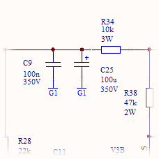 Dwa dławiki i dwa pokaźnych rozmiarów kondensatory, każdy o pojemności 500µF, stanowią bardzo efektywny główny filtr zasilania. W warunkach testu na wejściu filtru mierzone jest napięcie stałe 462V przy tętnieniach 26Vrms. Na wyjściu filtru, przy napięciu stałym 439V, tętnienia sieci spadają do poziomu mniejszego od 0,5mVrms. Są to wartości w pełni zgodne z wynikami symulacji wykonanej za pomocą programu PSU Designer II.